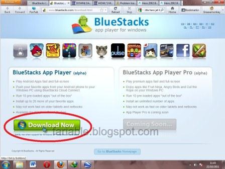 Untuk mendapatkan aplikasi BlueStacks, kita harus mendaftar di website resminya (klik di sini untuk mendaftar). Lalu, tunggu konfirmasi di inbox e-mail bahwa kita dapat mendownload aplikasi ini. Di dalam pesan e-mail, terdapat link untuk mendownload aplikasinya yang sebesar 116,98 mb. Jika saya benar, maka aplikasi ini juga dapat didownload tanpa perlu mendaftarnya. Klik link download yang ada di bagian bawah.